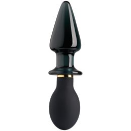 Lube up and choose your favourite side, a smooth tapered glass plug or a rounded silicone bulb, sure to stretch and fill you. Shuffle through the vibrations that can be felt on either side or experiment with temperature play by letting only the glass side of the plug sit in warm or cool water before use.