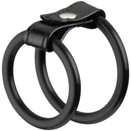 Boost your erection (and confidence) with these simple rings, connected with a faux-leather strip. Place the larger ring around your penis and testicles, and let the smaller ring surround your penis only. Use lube (water-based or silicone) to help easily slide the rings into place.