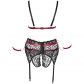 Earn a standing ovation in this mouthwatering ensemble from Cottelli Bondage. In lace and red straps, the bra, crotchless panty and suspender belt are joined by arm loops for light restraint play.