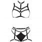 The waist harness has straps running from your waist to your thighs in Tomb-Raider style, crossing over your cheeky booty in the process. Covering your intimate area with a triangle-shaped piece, the thong joins the strappy fun with decorative details around your hips.