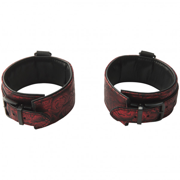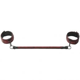 The cuffs are reversible in design, allowing you to choose between the simple black and the red rose-metal also featured on the bar. They are adjustable and padded for comfort while holding the ankles in a firm grip.