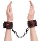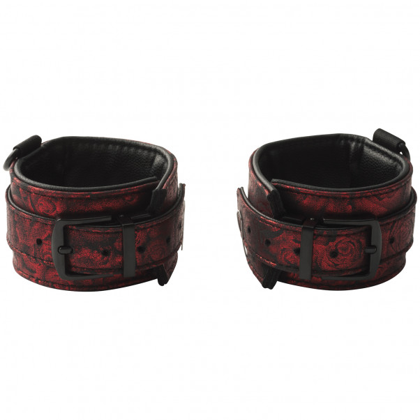The soft faux leather cuffs are reversible with black and red rose-metal design on either side for you to choose between. They are adjustable to fit most sizes, and the buckle allows you to tailor the restraint to your liking.