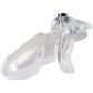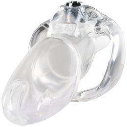 Enter the riveting realm of intimate submission with the V5 Maxi clear chastity device from HolyTrainer that features a built-in locking mechanism. The extra-firm bio-sourced resin material is ideal for long-time wear and ensures your member is safe in its heavenly captivity.