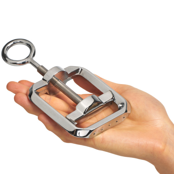 The clamp is the perfect tool for punishing your disobedient partner - simply unscrew the metal bar, place the balls in the opening, and tighten the clamp to your preference. If you desire an even kinkier experience, weights and other erotic accessories can be attached to the metal ring. The unyielding stainless steel and the screw mechanic make this intense clamp best suited for experienced BDSM lovers.