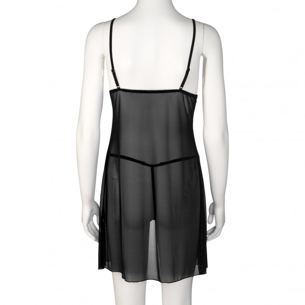 The babydoll is slightly transparent for an arousing "see-through" effect. The sexy lace covering the bust adds to the sensual look, topped by two simple straps that can be adjusted for the perfect fit.