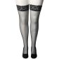 From feet to thighs, the black stockings wrap your pins in smooth and stretchy material. The thick and elasticated lace hem firmly secures the stockings during wear, with or without suspender straps.