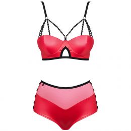 Add a dash of edgy to your erotic adventures with this sizzling red Leatheria bra set from Obsessive.