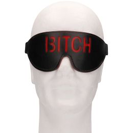 The faux leather mask highlights the b-word in bright red – thoroughly marking the sub of the night. The blindfold helps to heighten the other senses, making every touch intense and by surprise. The inside of the mask is soft and feels good against the skin.