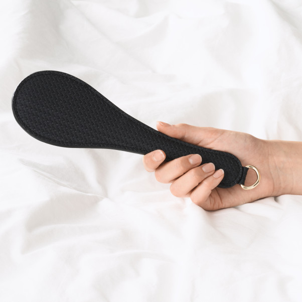 Slip the blindfold over their face to leave them in breathless suspense with every touch and sound intensified. Then use the paddle in teasing strokes before celebrating their meaty bits with hearty slaps.