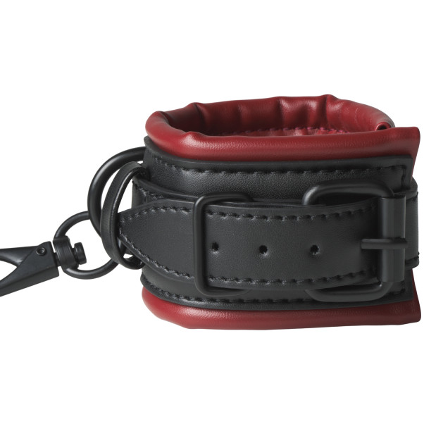 Tease your partner and explore power exchanges as you or they relinquish control with both hands tied together, or restrained to the bed. The buckles are adjustable to fit many sizes, and the black buckle side is beautifully contrasted by the bright scarlet that lines the inside.