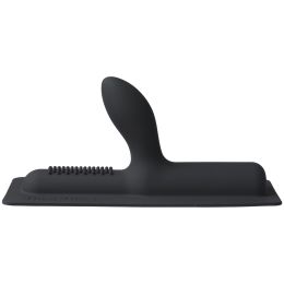 A curved shaft with ribs is ready to provide your G-spot or P-spot with the loving it deserves while a panel of nubs rubs against you for clitoral and perineal pleasure.