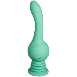 Land the alien on a smooth surface and let the suction cup keep it stable. The squishy shaft has a pointed, firm tip perfect for targeting the joyful thrust directly where you need them. Use the flexible centrifugal base to angle and position your handsfree joyride to your liking.